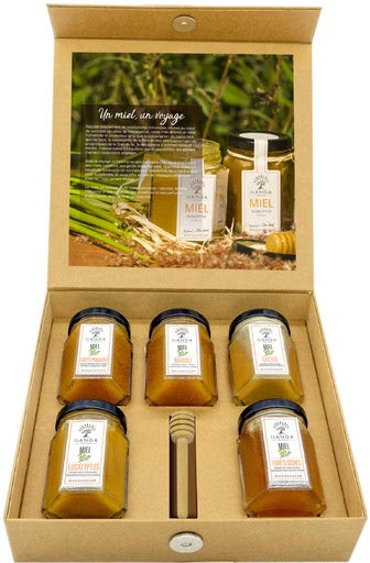 Miel de Niaouli, Miel de Litchi, Miel d'Eucalyptus, Miel de Baies Roses